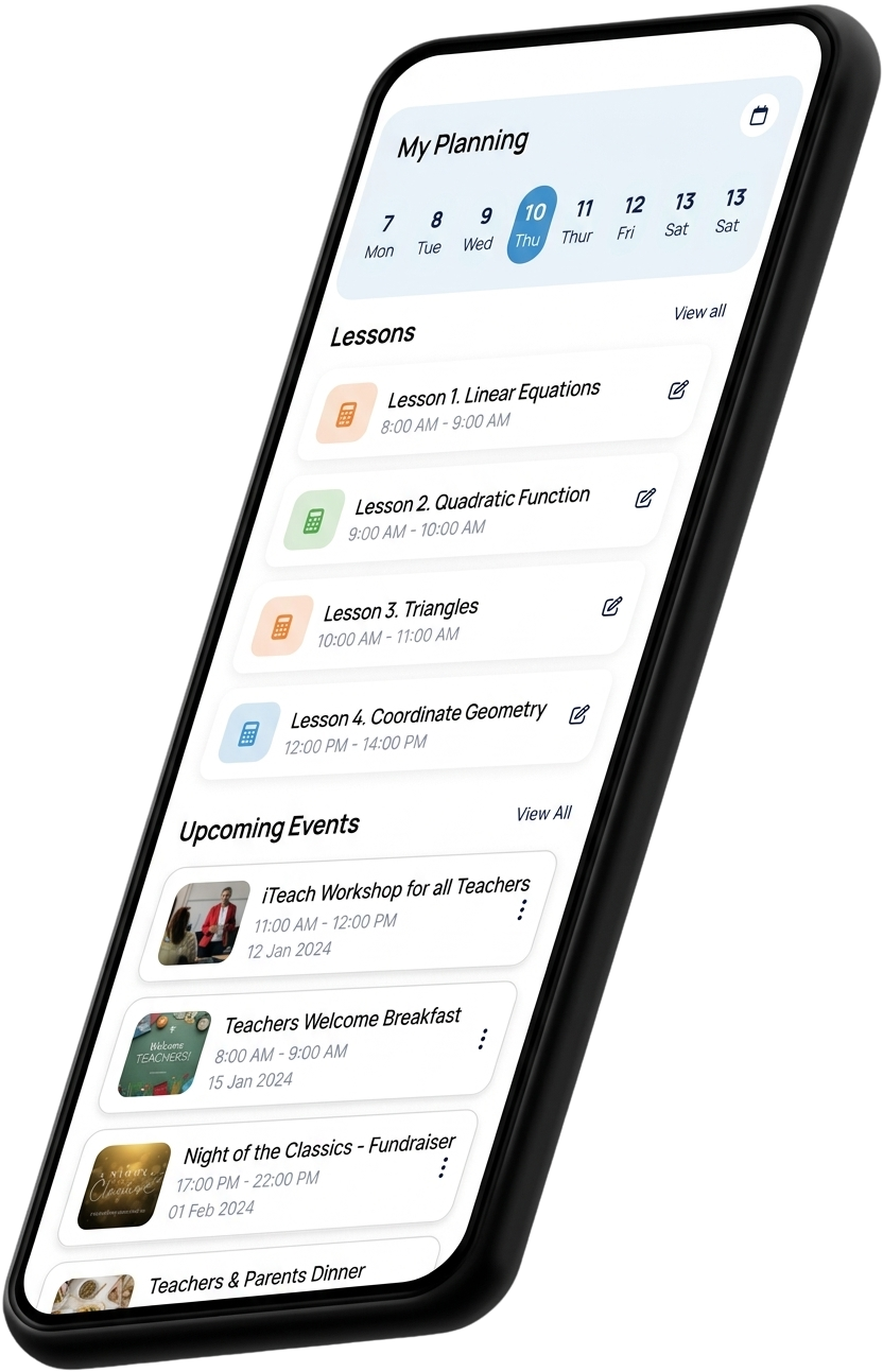 - Educators: Manage classes, planning, and attendance in one place.