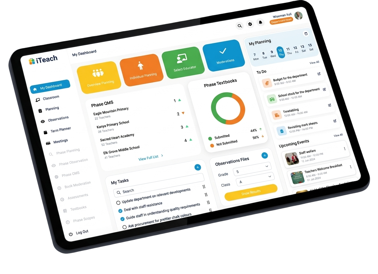 iTeach provides role-based dashboards designed to support every layer of your school’s structure — from classroom educators to senior leadership.